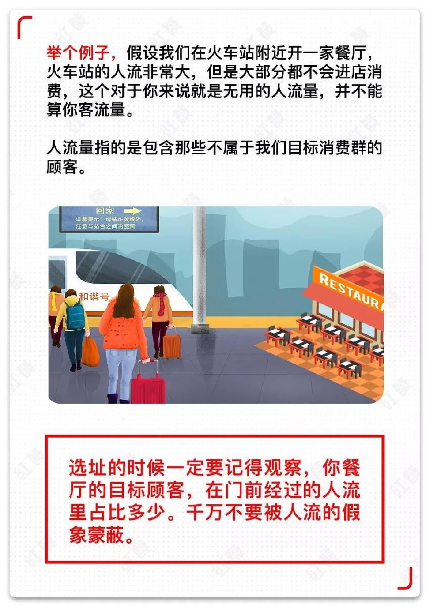 有位餐饮专家说,选址就是选客流量。但是,很多人却将人流量当成了客流量。