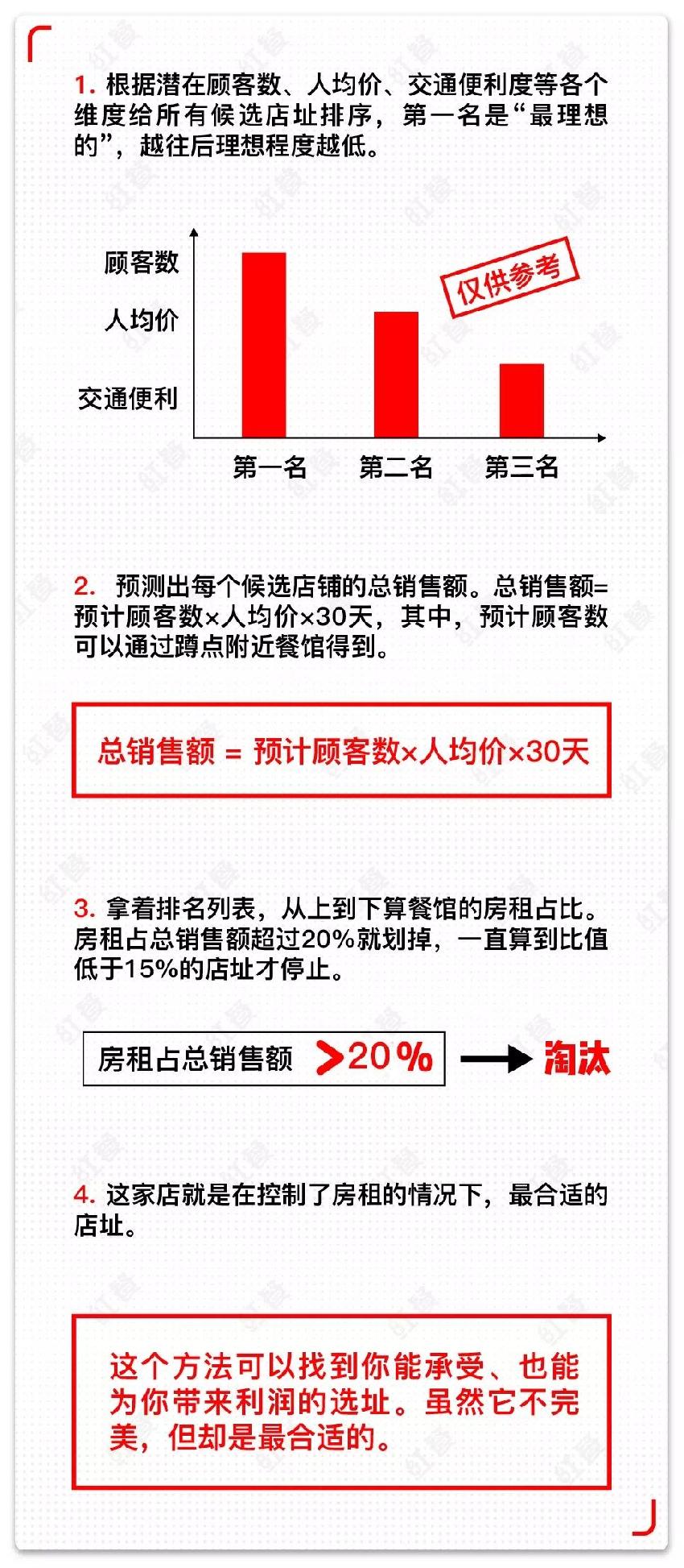 老板们选址就需要细细计算每个店址的房租占比,腩潮鲜给出如下方法: