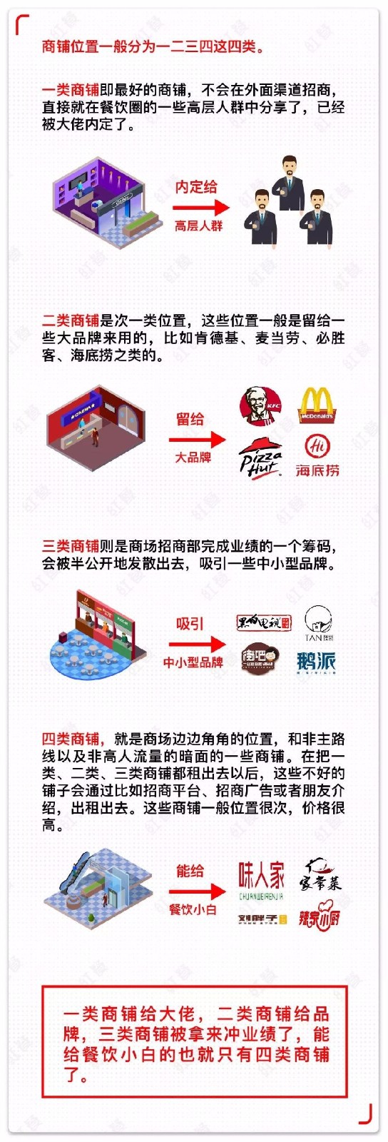 腩潮鲜发现很多餐饮创业者认为选址很重要,所以宁愿花多点钱也要租个好的店铺。但是租来租去都没办法租到好的位置呢?特别是商场里面的店铺,好的位置基本上都没有招租的。但是往往因为被招商部的人说这里某某大餐饮品牌都来了,一咬牙也就租了。